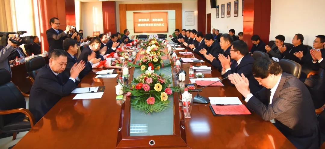 在歡快的音樂聲中,陜鼓集團董事長李宏安與冀鋼集團董事長王樹華簽訂了“退城進園升級改造項目”合作框架協(xié)議并集體合影留念。